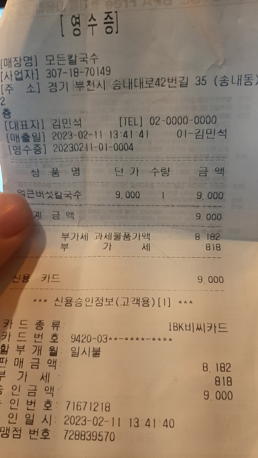 위치는 영수증에 적힌 대로? 경기 부천시 송내대로 42번 길 35(송내동) 2층